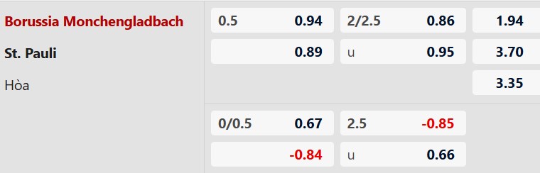 Soi kèo châu Á Monchengladbach vs St Pauli: