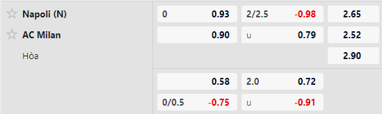 Thông tin tỷ lệ kèo Napoli vs Milan: