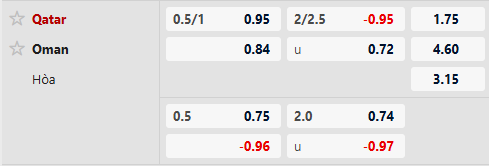 Thông tin tỷ lệ kèo bóng đá Oman vs Qatar: