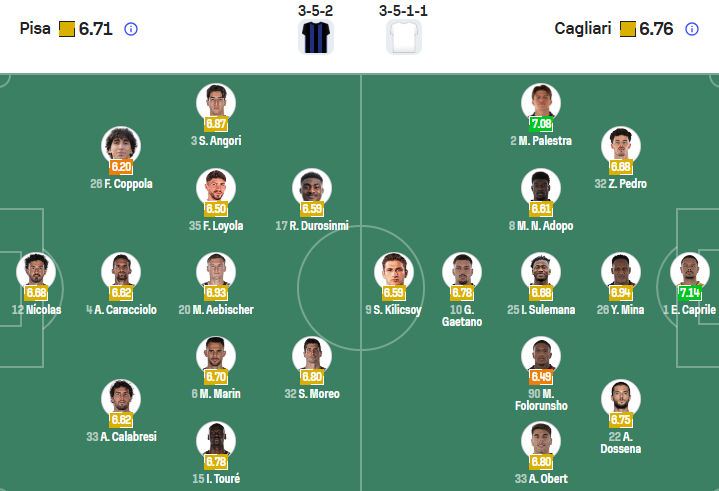 - Pisa hòa 3, thua 1 trong 4 trận gặp Cagliari gần đây.