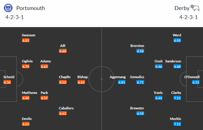 Đội hình dự kiến Portsmouth vs Derby County: