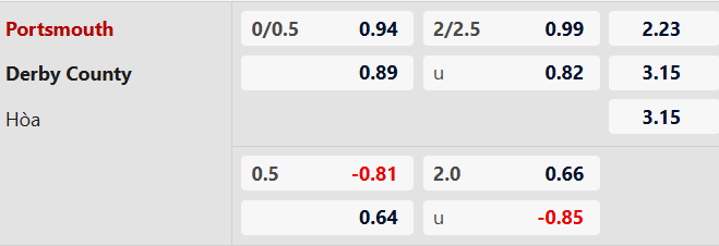 Soi kèo châu Á Portsmouth vs Derby County: