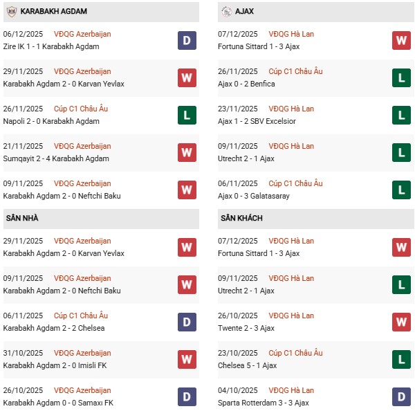 Sân nhà vẫn luôn là điểm tựa lớn nhất của Qarabag. Trong 10 trận gần đây tại đây, họ thắng tới 7 và hòa 3, chuỗi bất bại thể hiện sự chắc chắn và khả năng tận dụng tối đa lợi thế về mặt khí hậu lẫn mặt sân. Trước Ajax đang gặp khủng hoảng, Qarabag rõ ràng nắm trong tay cơ hội rất lớn để giành trọn 3 điểm.