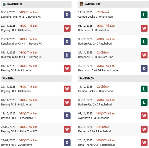 - Rayong toàn thua cả 8 trận gặp Ratchaburi gần đây.