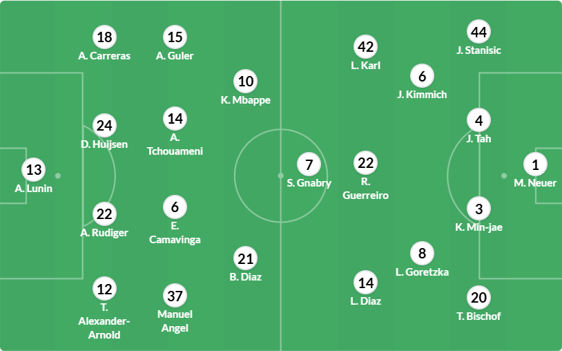 Đội hình dự kiến Real Madrid vs Bayern Munich: