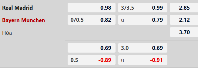 Soi kèo châu Á Real Madrid vs Bayern Munich: