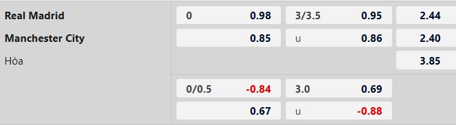 Thông tin tỷ lệ kèo bóng đá Real Madrid vs Man City: