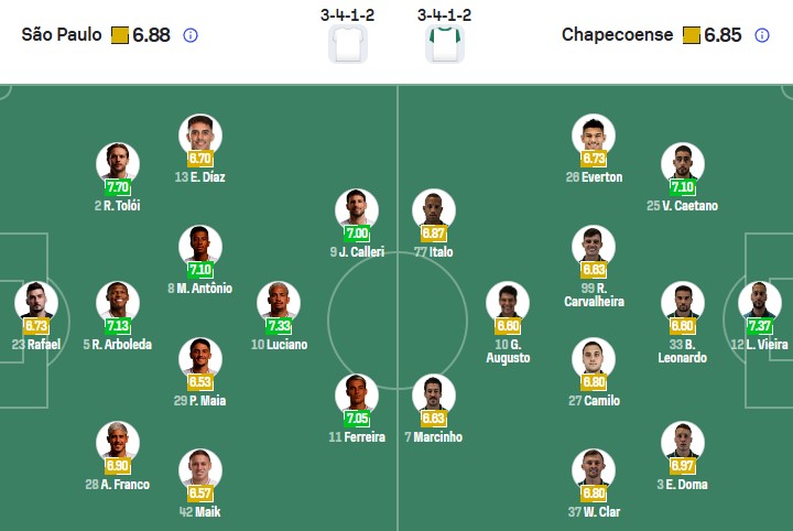 Đội hình dự kiến Sao Paulo vs Chapecoense: