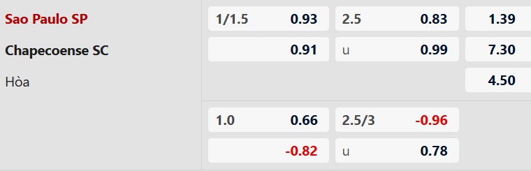 Sao Paulo thắng hiệp 1: Trên sân nhà, tại giải VĐQG Brazil, 3 trận gần đây, Sao Paulo không thua và có 2 chiến thắng trước giờ nghỉ. Ngược lại, Chapecoense nhập cuộc cực tệ khi thua liên tiếp 2 trận vừa qua trên sân khách trong 45 phút đầu và 2 lần đụng độ gần nhất, phần thắng trong hiệp 1 cũng thuộc về Sao Paulo.