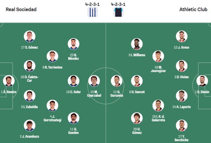 Đội hình dự kiến Sociedad vs Bilbao: