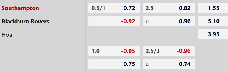 Thông tin tỷ lệ kèo Southampton vs Blackburn: