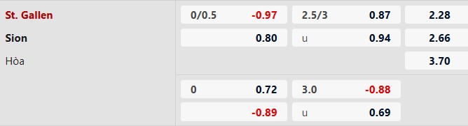 Thông tin tỷ lệ kèo St. Gallen vs Sion: