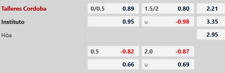 Thông tin tỷ lệ kèo Talleres Cordoba vs Instituto: