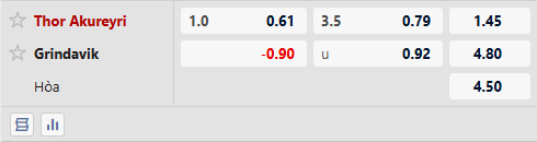 Thor Akureyri bất bại tới 7/8 trận đấu vừa rồi chạm mặt Grindavik. Thor Akureyri thắng tới 4/6 trận đấu vừa qua và là lựa chọn an toàn. Grindavik khiến nhiều nhà đầu tư châu Âu dè chừng khi thua tới 6/7 trận đấu gần nhất.
