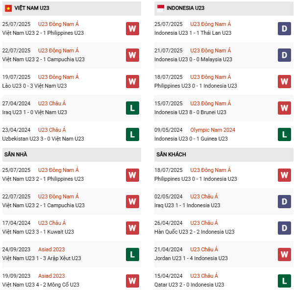 Thống kê phong độ U23 Việt Nam vs U23 Indonesia: