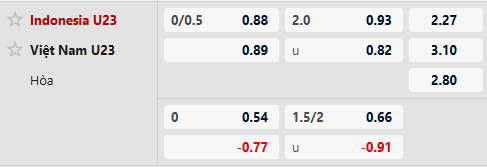 Thông tin tỷ lệ kèo bóng đá U23 Việt Nam vs U23 Indonesia: