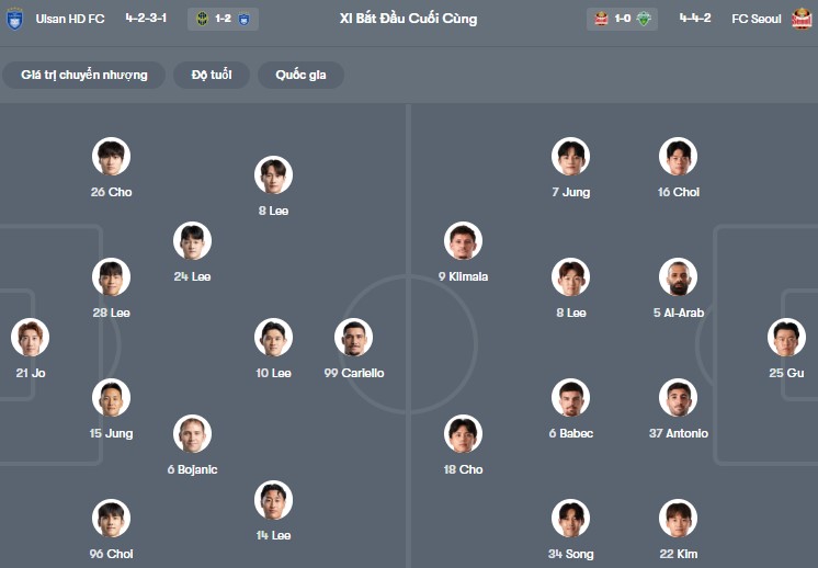 Đội hình dự kiến Ulsan HD vs FC Seoul: