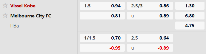 Thông tin tỷ lệ kèo Vissel Kobe vs Melbourne City: